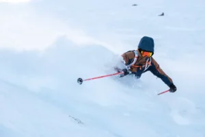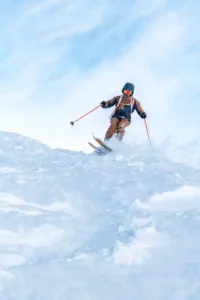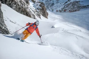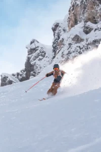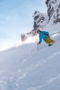 Bei Camp 1 wird das skifahrerische Level „gemischt“ sein. D.h., deine Skitechnik muss nicht perfekt sein, aber bei guten Schneebedingungen solltest du im Tiefschnee zurechtkommen.