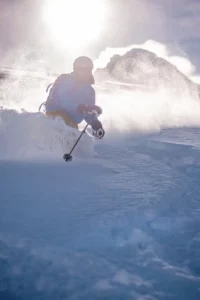 Bei beiden Camps sind Aufstiege selten und kurz. Im Einzelfall und nach Absprache bis max. eine Stunde. Du benötigst ausreichend Kondition für ganztägiges Tiefschneefahren.